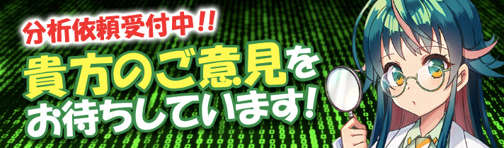 分析依頼 分析してほしいホールがある場合は、下記のフォームからご依頼ください。 ※ご依頼いただいたホールでも事情により分析対象とならない場合があります。 ニックネーム 性別 ※ 男性 女性 年齢 ※ 歳 お住まいの都道府県 ※ 都道府県を選択 北海道 青森県 岩手県 宮城県 秋田県 山形県 福島県 茨城県 栃木県 群馬県 埼玉県 千葉県 東京都 神奈川県 新潟県 富山県 石川県 福井県 山梨県 長野県 岐阜県 静岡県 愛知県 三重県 滋賀県 京都府 大阪府 兵庫県 奈良県 和歌山県 鳥取県 島根県 岡山県 広島県 山口県 徳島県 香川県 愛媛県 高知県 福岡県 佐賀県 長崎県 熊本県 大分県 宮崎県 鹿児島県 沖縄県 お住まいの市区町村 分析してほしいホール名や希望する分析 (複数可) ※ ご登録いただいた個人情報はお問い合わせのご連絡以外には使用いたしません。 プライバシーポリシーをお読みいただき、個人情報の取り扱いについて同意の上で送信してください。